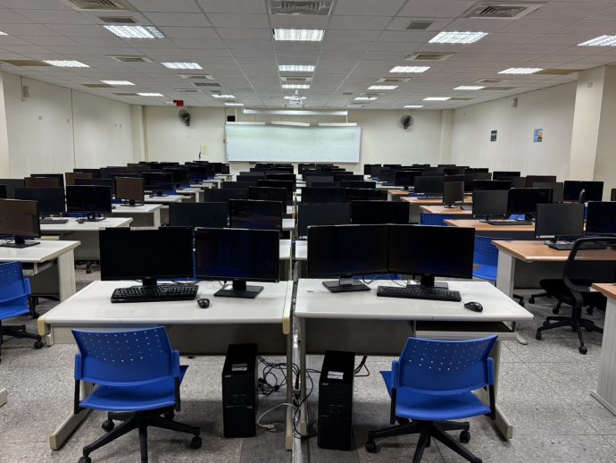MB211規劃自由上機練習與學期考場功能,具備階梯式視野與遠距教學視訊系統。